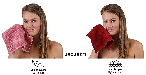 Betz Set di 10 Lavette Premium Misura 30 x 30 cm 100% Cotone Colore Rosa Antico e Rosso Scuro