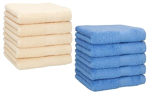 Betz Set di 10 Lavette Premium Misura 30 x 30 cm 100% Cotone Colore Beige e Azzurro