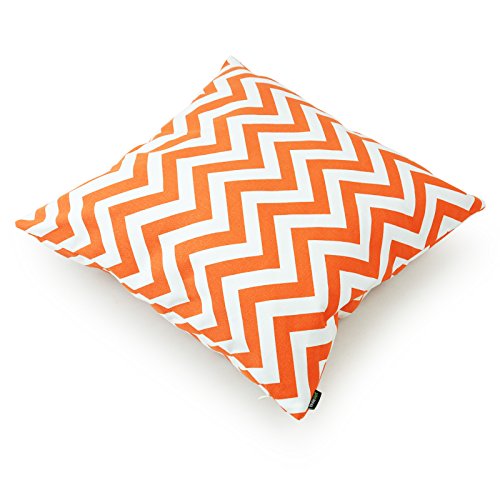 Lavievert 20 X 20 Inches Decorative Cotton Canvas Square Throw Pillow Cover Cushion case/Copricuscini e federe Handmade White and Orange Chevron Stripe Toss Pillowcase/Copricuscini e federe with Invisible Zipper Closure (For Living Room, Sofa, Etc...)