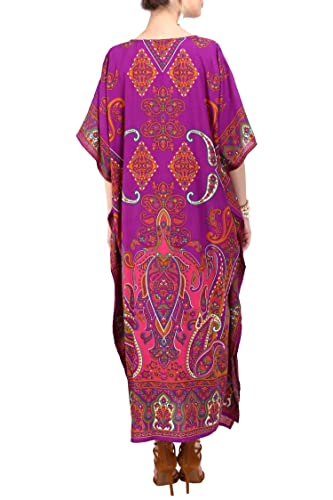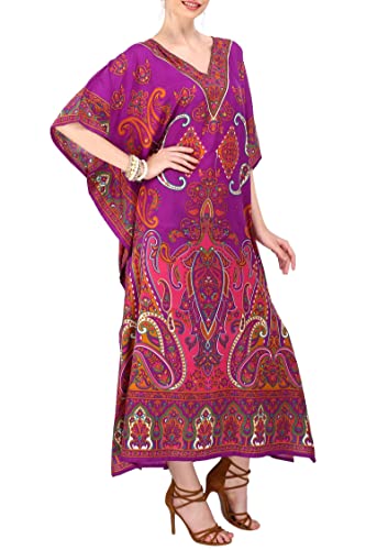 Miss Lavish London Donne Kaftan Tunica Kimono Libero Formato Lungo Maxi Partito Vestito per Loungewear Vacanze Pigiama Spiaggia di Tutti i Giorni Coprire i Vestiti #102 [Viola EU 52-56]