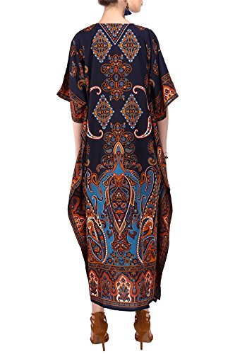 Miss Lavish London Donne Kaftan Tunica Kimono Libero Formato Lungo Maxi Partito Vestito per Loungewear Vacanze Pigiama Spiaggia di Tutti i Giorni Coprire i Vestiti #102 [Blu EU 46-50]
