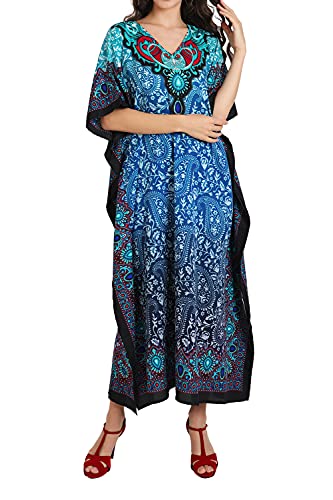 Miss Lavish London Donne Kaftan Tunica Kimono Libero Formato Lungo Maxi Partito Vestito per Loungewear Vacanze Pigiama Spiaggia di Tutti i Giorni Coprire i Vestiti #101 [Blu EU 46-50]