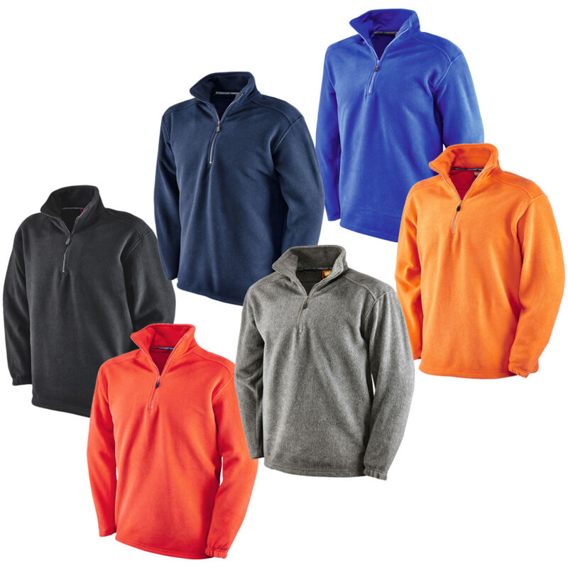 Pile da lavoro 100% in poliestere, peso 280 gr/m2. Realizzato con cerniera di chiusura al collo, polsini elasticizzati e coulisse di regolazione al fondo. Colore grigio melange, taglie disponibili dalla S alla XXL