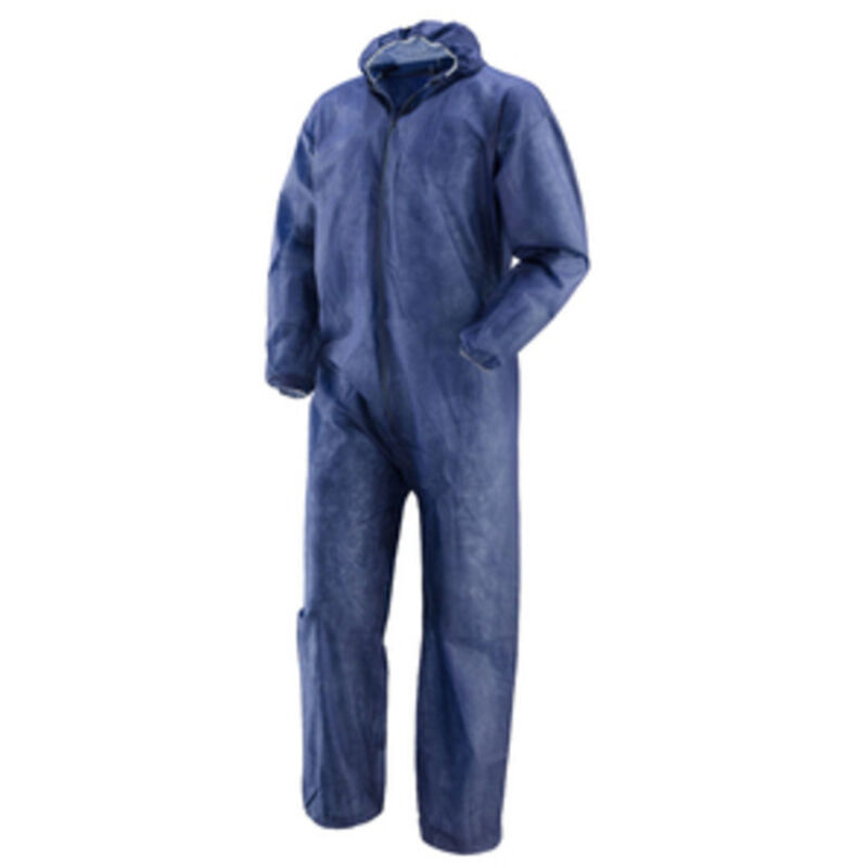 In polipropilene. Peso 40 g/mq Monouso. Ipoallergenica. Elastici senza lattice. Chiusura con cerniera. CE Ia categoria Taglia XXL Colore blu UDM - Unità di Misura: PZ UDM - Unità di Misura: 1,0
