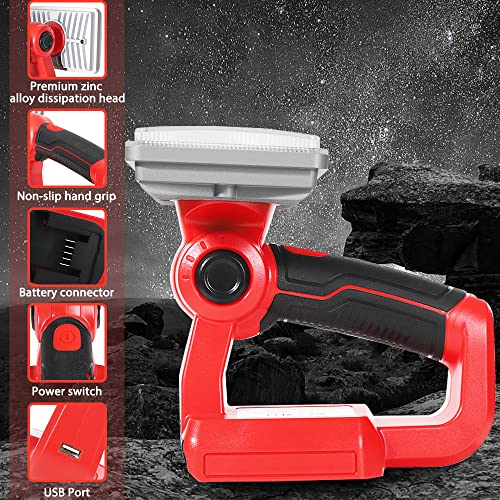 Faro da lavoro a LED senza fili 18V Proiettore portatile per esterni a lungo raggio con torcia USB 18W compatibile con Milwaukee M18 18V batteria al litio 48-11-1828, 48-11-1840 (senza batteria)