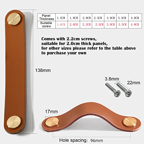 Lawen Creative 4 Maniglie Per Mobili Per Porte In Vera Pelle e Rivetti in Ottone (Arancione Chiaro, Doppio Foro)