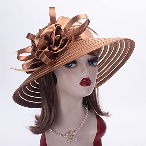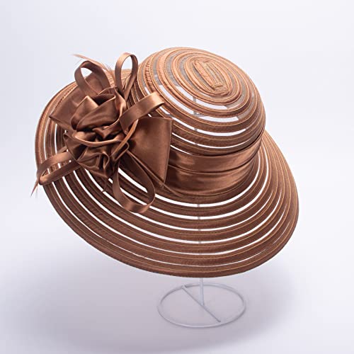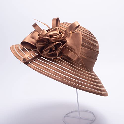 Lawliet Abito da donna Chiesa Matrimonio Kentucky Derby Satin Feather Floral Sun Hat