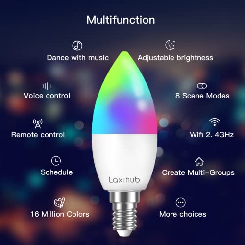 LAXIHUB Smart - Lampadina intelligente dimmerabile E14 RGB LED multicolore, colore regolabile, compatibile con Amazon Alexa e Google Home, 2 pezzi