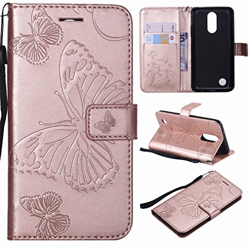 Laybomo LG K8 (2017) / M200N Custodia PU Pelle Portafoglio con Slot per schede Morbido TPU Silicone Gomma Magnetico Protezione Stand Flip Cover Custodia per LG K8 2017, 3D Farfalla (Oro Rosa)