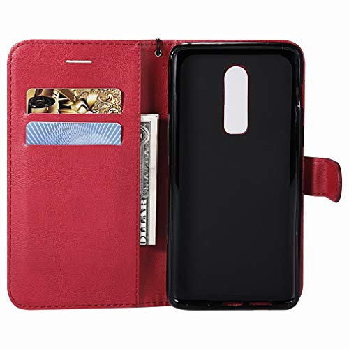 Laybomo OnePlus 6 Custodia PU Pelle Portafoglio con Slot per schede Morbido TPU Silicone Gomma Magnetico Protezione Flip Cover Custodia per OnePlus 6, Stile Aziendale (Rosso)