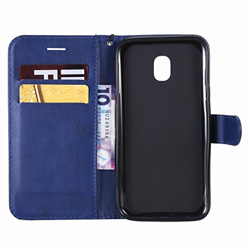 Laybomo Samsung Galaxy J3 (2017) J330 Custodia PU Pelle Portafoglio con Slot per schede Morbido TPU Silicone Gomma Magnetico Protezione Flip Cover Custodia per Galaxy J3 2017, Stile Aziendale (Blu)