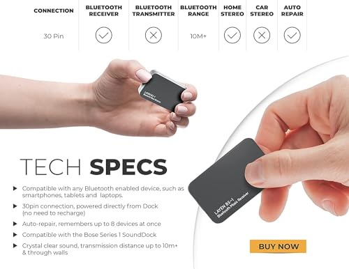 LAYEN BS-1 Ricevitore audio adattatore Bluetooth a 30 pin per Bose SoundDock e docking station iPod iPhone - Convertitore wireless Bluetooth per altoparlanti con 30 pin (non adatto per auto)