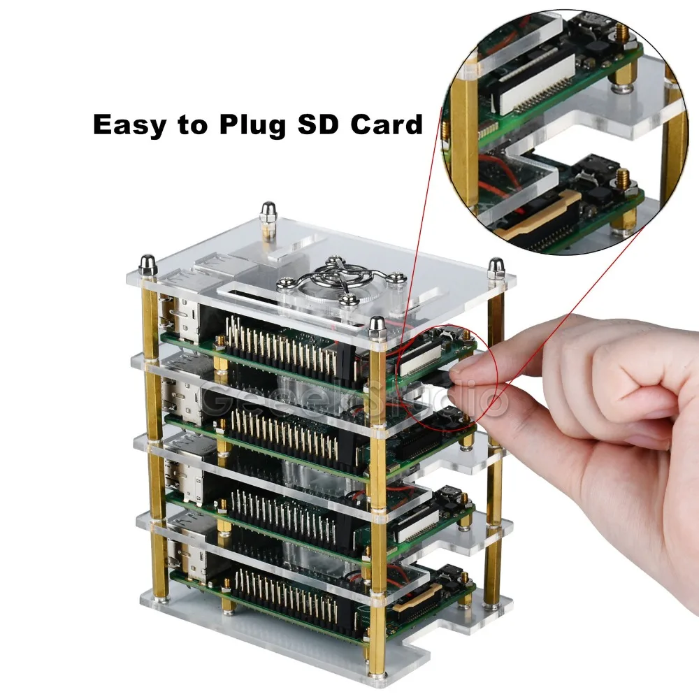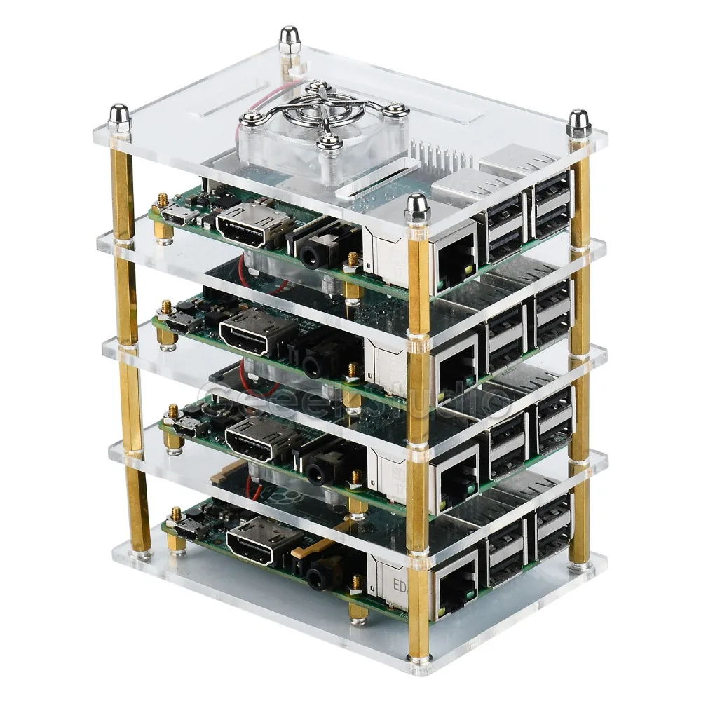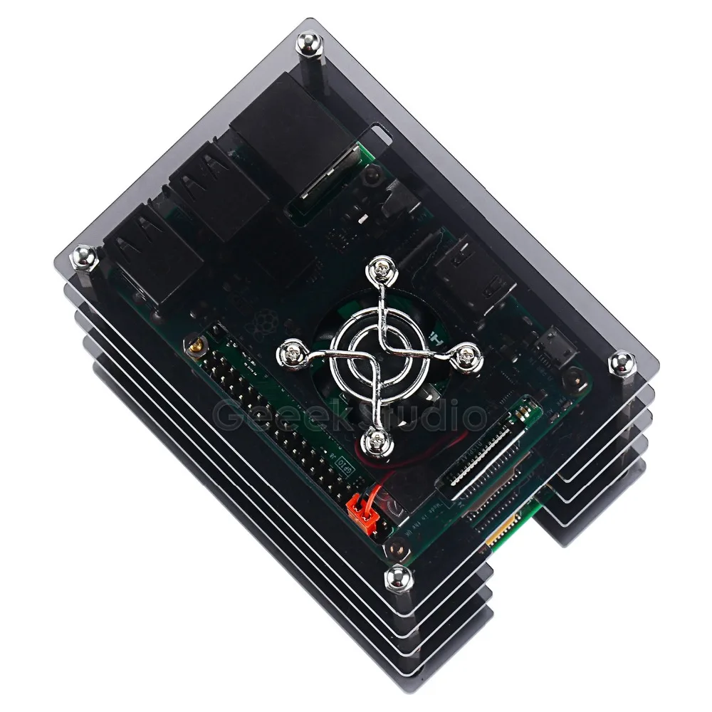 New 4 Layers Acrylic Dark Brown / Transparent Clear Case Cooling Fan Heatsink Screwdriver for Raspberry Pi 4B / 3B+ / 3B /2B/B