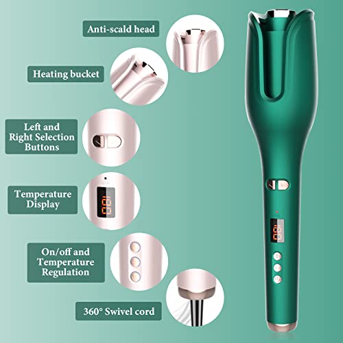 Layhou Arricciacapelli automatico Professionale, Ferro Arricciacapelli portatile, Display LCD, 4 Temperatura anti-groviglio rotante a 360°, Per tutti i tipi di capelli