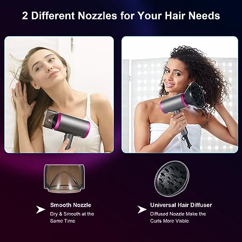 Impostazioni regolabili: questo asciugacapelli è dotato di 2 impostazioni di velocità regolabili e un interruttore per l'aria calda/fredda per uno styling e un'asciugatura personalizzati a seconda del tipo e dello stile dei capelli.