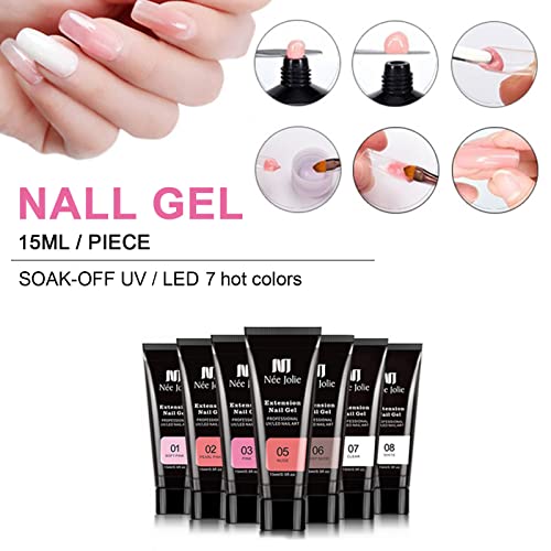 Set di strumenti per l'estensione delle unghie: puoi ottenere 7 colori di gel per l'estensione delle unghie, 15 ml ciascuno, 8,5 ml di base coat, 8,5 ml coat, lima per unghie, clip per modellare le unghie, 100 forme per unghie, soluzione antiscivolo da 20 ml, lampada per unghie e unghie a doppia estremità spazzola.