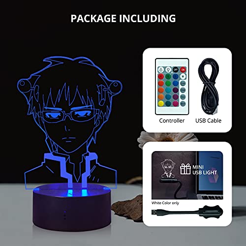 Laysinly The Disastrous Life of Saiki K Japan Anime Action Figure 3D Night Light 16 colori che cambiano 4 modalità USB carica a batteria Touch Remote Control Fan Cosplay Party Sleep Lamp