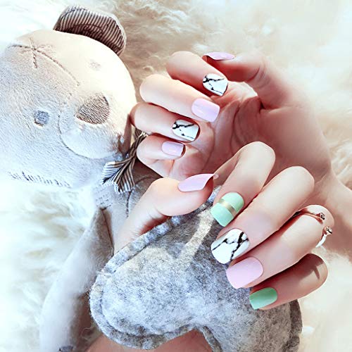 Lazder Unghie finte, per nail art, effetto marmorizzato, lucenti, copertura completa, confezione da 24 pezzi