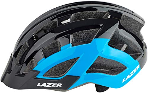 Lazer - Casco Compact Deluxe 2019 + INSECTNET + LED Posteriore, Colore Nero/Blu, Taglia Unica 54-61