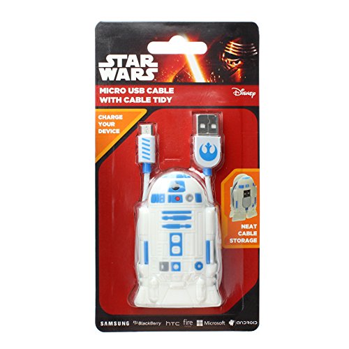 Lazerbuilt cbsw-usb-r2d2 Cavo Dati e Ricarica Micro USB con avvolgicavo - Personaggio Star Wars R2D2 - Compatibile con Samsung, HTC, Microsoft, Android