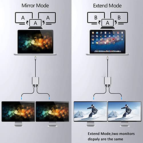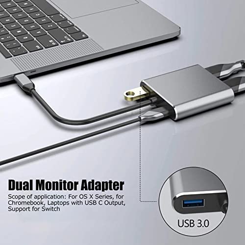 Lazmin112 Adattatore da USB C a Doppio HDMI, Convertitore da Tipo C a HDMI Adattatore da USB C a Doppia Interfaccia Multimediale Ad Alta Definizione 4 in 1 4K 5 Gbps 60 W Docking Station di Ricarica