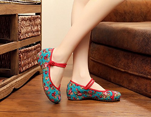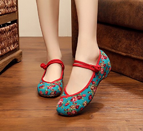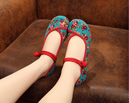 Lazutom - Scarpe da donna, stile cinese, stile vintage, ricamate, Mary Jane Qipao, Verde (Verde), 39.5 EU