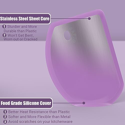 Lazymi Flessibile Raschietto per Pasta in Silicone, Grande (15,2×10,9 cm) Raschietto per Pasticceria Multiuso Antiaderente, Raschietto per Ciotole Spatola per Pane, Pasta Madre, Pizza (2Pcs, Viola)
