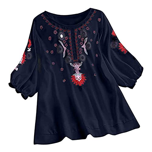 Lazzboy Women - Camicia - Tunica - Floreale - A Punta Tonda - Manica Lunga - Donna Navy-Floral 46 IT X-Large