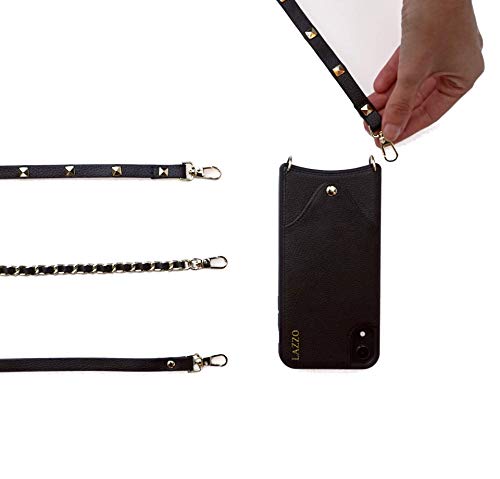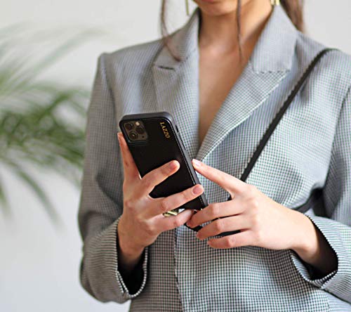 LAZZO Collana per cellulare [Dora] - Custodia con cinturino per iPhone 12 Pro Max - Elegante custodia per cellulare da appendere con scomparto per carte di credito (nero - semplice)