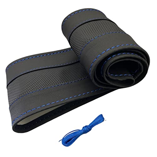 LB106 - Coprivolante 37-39 cm con lacci neri in pelle forata con cuciture blu