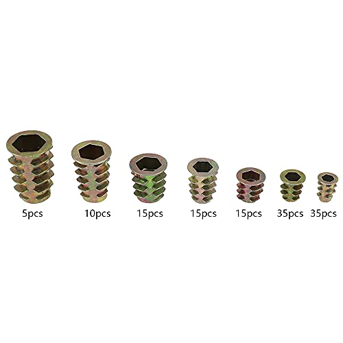 LbsAMP Dadi Inserire la vite Hex Avretta Avretta Inserire i dadi in legno utilizzati per le viti in legno Assortimento - 135pcs