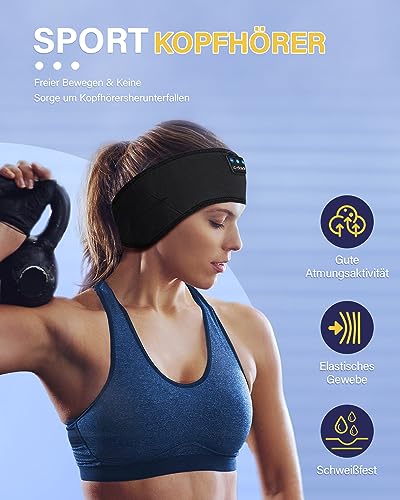 Cuffie per dormire super morbide e traspiranti: rispetto alle normali fasce sportive, le cuffie Bluetooth assorbono il sudore più velocemente e evaporano. Queste cuffie per dormire sono dotate di un microfono integrato, in modo da non perdere nessuna chiamata in arrivo. Si prega di notare che è necessario smontare il modulo Bluetooth prima di pulire la fascia Bluetooth per le cuffie.