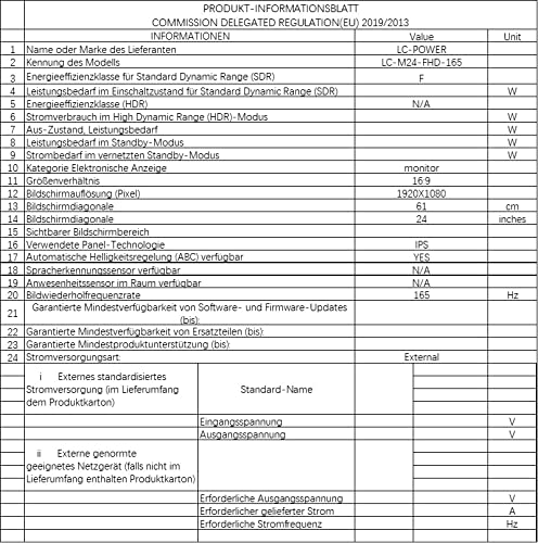 LC-Power Monitor 24" Full HD IPS, 1920 x 1080, 1ms, Adaptive Sync 165Hz, 120% sRGB, 1 x DP 1.2, 1x HDMI 2.0, 1x HDMI 1.4, 1x USB-C (Video/Data/PD 15 W), Game Plus, PiP, PbP, Low Blue Light, Nero