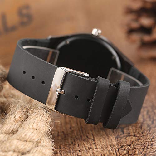 LCDIEB Orologio da Uomo in Legno di Ebano di Lusso Minimalismo Orologio al Quarzo analogico Bianco Orologio Sportivo da Uomo con Cinturino in Vera Pelle, Nero