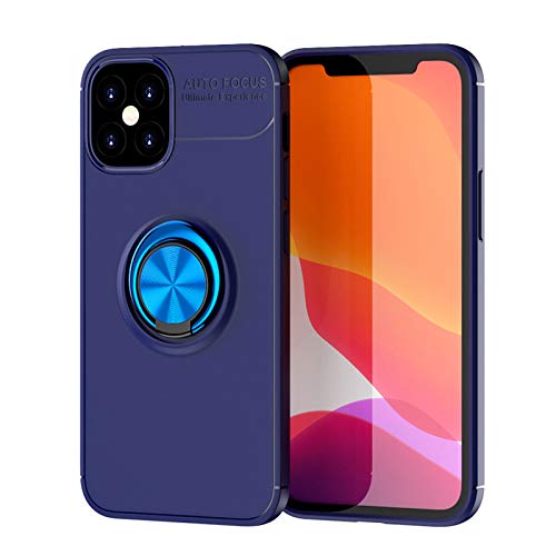LCHDA Cover per iPhone 12 PRO Max 6,7 Pollici, Custodia con Supporto ad Anello Rotante a 360 Gradi Magnetica Auto Moto Staffa Metallico Anti-Goccia Guscio di Silicone Morbido - Blu + Blu