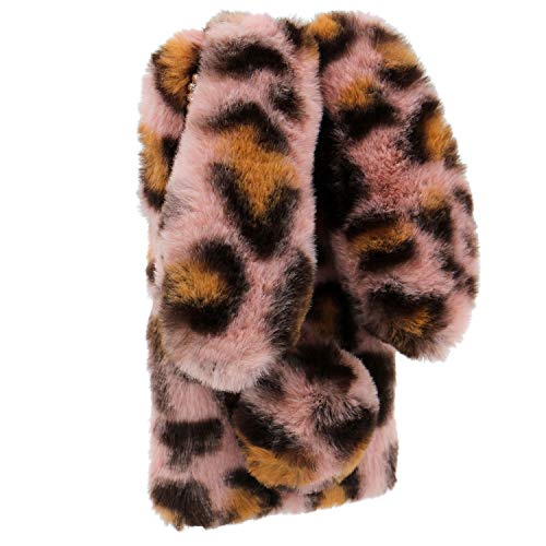 LCHDA Cover per Xiaomi Redmi Note 8 PRO, Carino Orecchie da Coniglio Morbide Palle di Pelo Pelose Caldo Pelliccia Sintetica Peluche Soffice Flessibile TPU Paraurti Custodia Protettiva - Leopardo Rosa