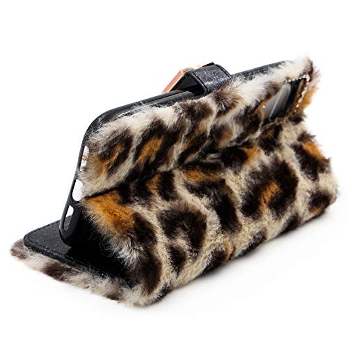 Materiale di alta qualità: questa esclusiva custodia per telefono è realizzata in finta pelliccia di coniglio, morbida e confortevole, pelle PU di alta qualità con glitter e silicone flessibile in TPU. La morbida custodia a portafoglio non solo è molto resistente e piacevole al tatto, ma riscalda anche le mani in inverno.