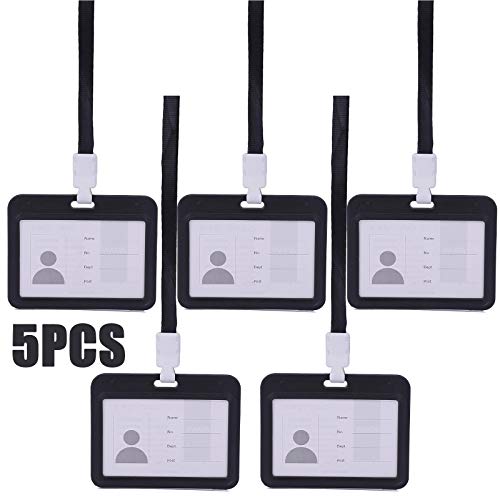 Ldiawnshi Porta Badge da Collo Porta Tesserino O Porta Scheda Small Clear Protezione della Carta 4 X 3 Pollici con Supporto per Carta in Plastica Trasparente Pp Trasparente con Cordino (Nero)