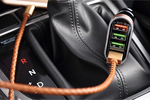 Ldnio, caricabatterie a carica rapida 2.0 da auto, con 4 porte USB e luce notturna LED, in oro rosato, con cavo micro USB incluso
