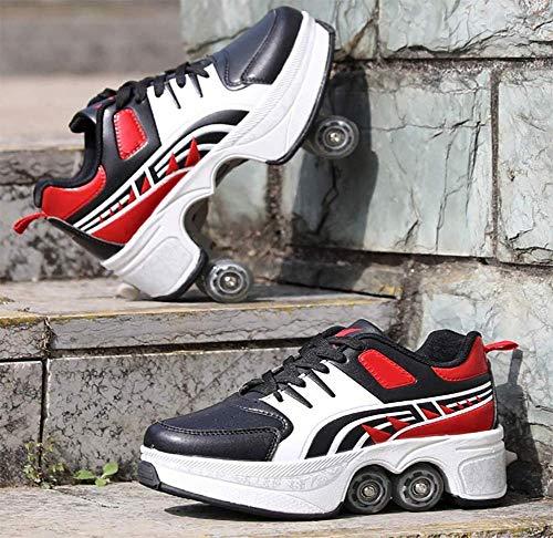 [Deformation Roller Shoes 2 in 1]: la suola creativa ha un paio di ruote nascoste. Se vuoi scivolare, basta girare l'interruttore sul tallone e accendere il volante per passare facilmente dalle scarpe da parkour ai pattini trasformabili. La squadra di volo a vela del tuo amico ti sta aspettando!