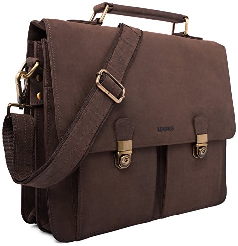 LEABAGS Bilbao cartella vintage in vera pelle di bufalo- Noce moscata