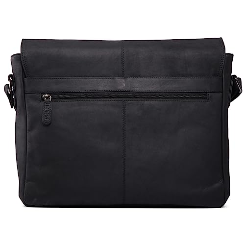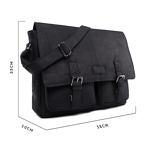 LEABAGS Borsa per documenti uomo e donna | Borsa per laptop in vera pelle fino a 15" | Borsa a tracolla con tracolla | Borsa messenger | Borsa da lavoro | Borsa per insegnanti | Natura Nera
