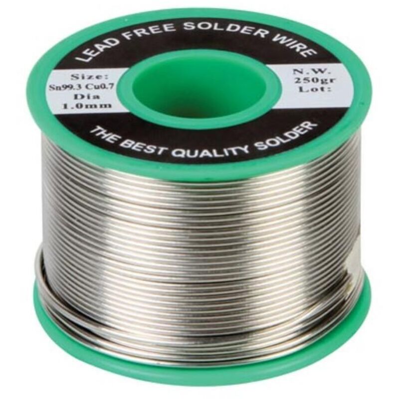 Environmental Data Melting temperature 230 °C Technical Data Lead-free Yes Physical Properties Packaging Reel,Composition 0.7% Cu, 99.3% Sn,Diameter solder 1 mm,Dispenser No,Resin core Yes