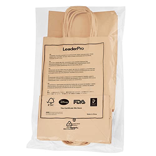 LeaderPro 50 Pezzi Sacchetti di Carta con Manici, 20,3 x 11 x 26,5 cm Buste Regalo, Borse Carta Kraft, Sacchetti per Feste Possono Essere Fai Da Te, Sacchetti Multifunzionali di Grande Capacità