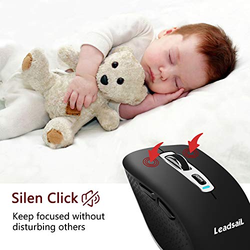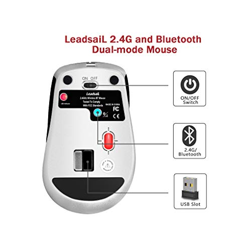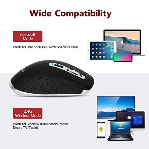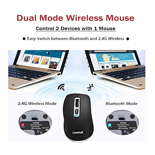 LeadsaiL 2.4G Mouse Senza Fili e Mouse Bluetooth Dual Models, Mouse Ottico Silenzioso con Clic Mute, Ergonomic Mouse Senza Fili 2,4G con Nano Ricevitore, Cavo USB, 2400 DPI Mouse USB (Nero)