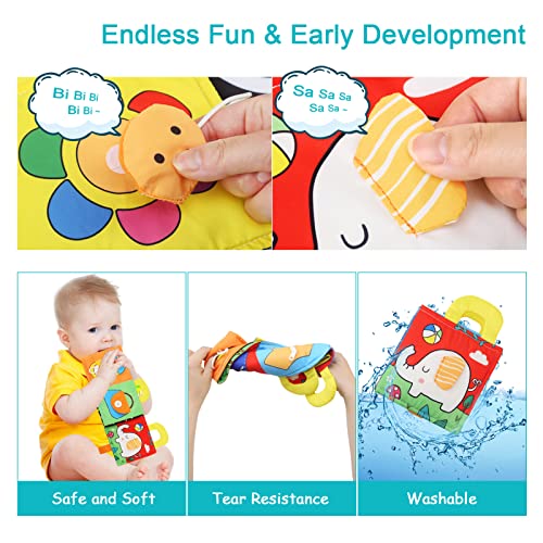 ★【Libro di stoffa non tossico e sicuro】 Il libro di stoffa morbida per bambini è realizzato con materiali di stoffa amichevoli, leggeri, lavabili, non tossici e resistenti agli strappi. Il libro per bambini supporta i graffi del bambino, non facile da strappare, molto resistente, adatto per neonati e bambini oltre 0 mesi.