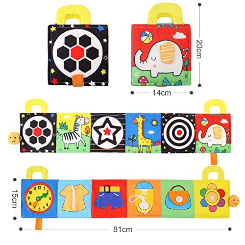 ★【Facile da trasportare e ottimo per i viaggi】La parte inferiore del libro per bambini ha un design a bastoncino magico, basta piegare il libro in modo che possa essere attaccato per riporlo facilmente. Inoltre, il design della maniglia sulla parte superiore del libro lo rende facile da trasportare per i viaggi. puoi legarlo alla culle, passeggini, sedie, seggiolini auto o ovunque tu voglia.È un ottimo giocattolo da viaggio per tenere i tuoi bambini occupati e tranquilli durante i lunghi viaggi.