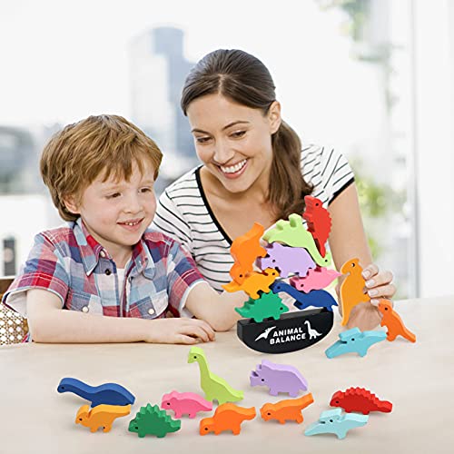 LEADSTAR Montessori Giochi da Impilare, Costruzioni Legno per Bambini, Blocchi di Costruzione Blocco D'equilibrio Giocattoli Regalo Educativi Costruzioni Impilabile Pedagogici per Bambino (Dinosauro)