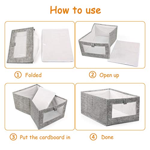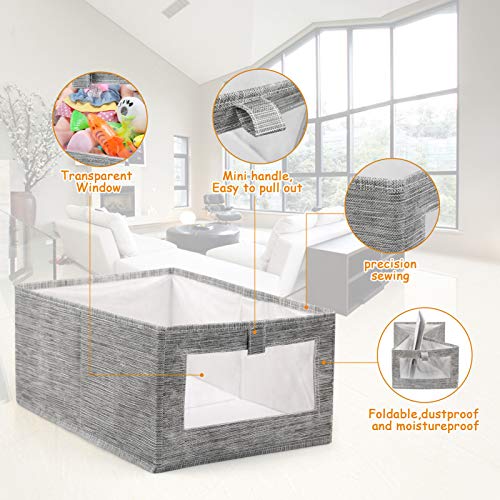 LEADSTAR Scatole per Armadio,3 Pezzi Pieghevole Contenitori per Armadio,Scatole Portaoggetti Custodia Contenitore in Tessuto con Finestra Trasparente per Vestiti Stagionali, Giocattoli, Libri