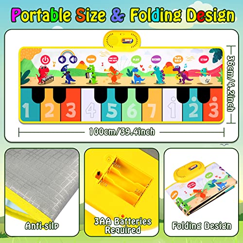♬ [10 brani demo/registrazione/riproduzione] - Il tappetino per pianoforte per bambini può riprodurre 10 brani per bambini con la semplice pressione di un pulsante e puoi scegliere la tua canzone demo preferita calpestando diversi tasti del pianoforte. Inoltre puoi regolare il volume della coperta musicale per scegliere il volume adatto al tuo bambino. Il tappetino musicale touch multifunzionale consente ai bambini di esplorare molte combinazioni di suoni e ispirare la loro creatività.